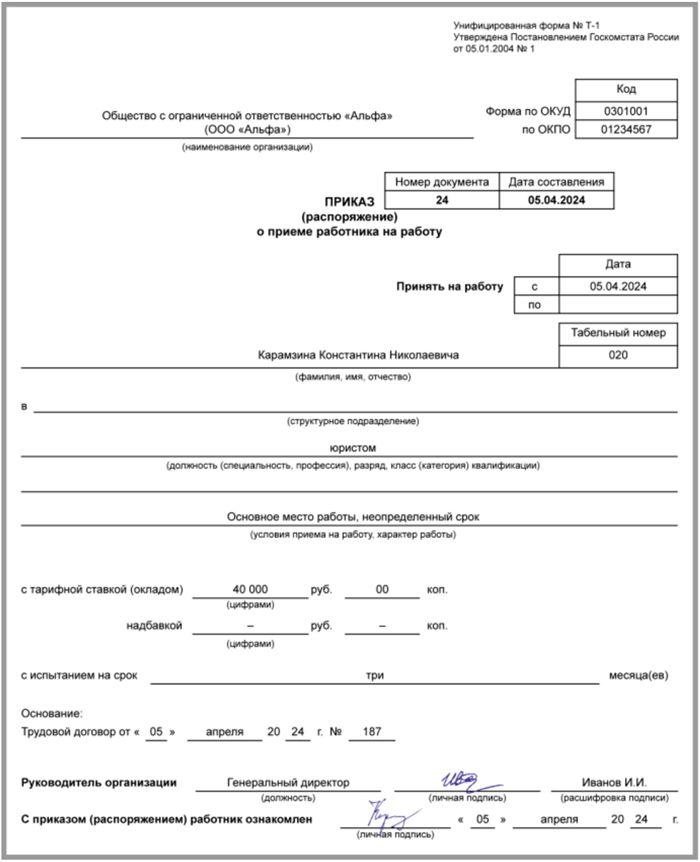 - 5 Приказ о трудоустройстве – следующий шаг
