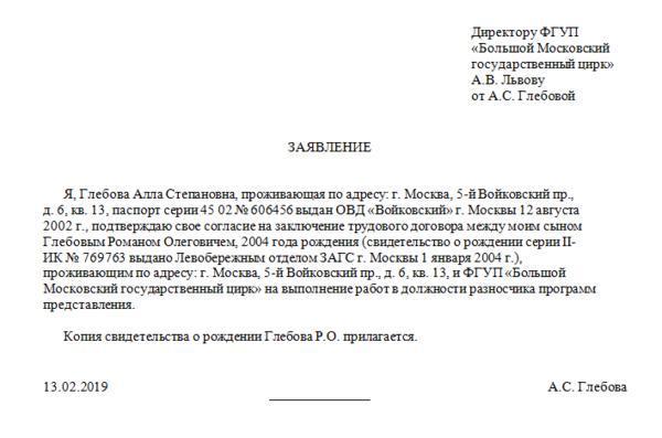 Оформление заявления о приеме на работу лица в возрасте от 14 до 16 лет