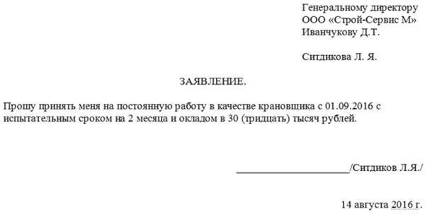 Структура заявления о приеме на работу: пример